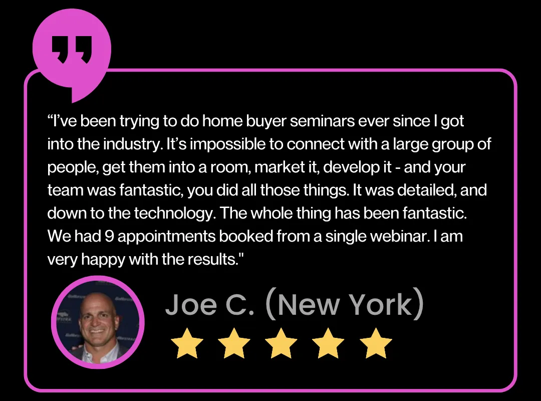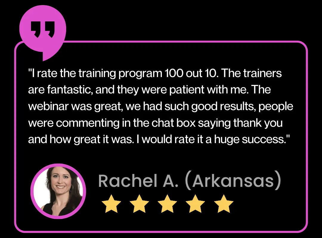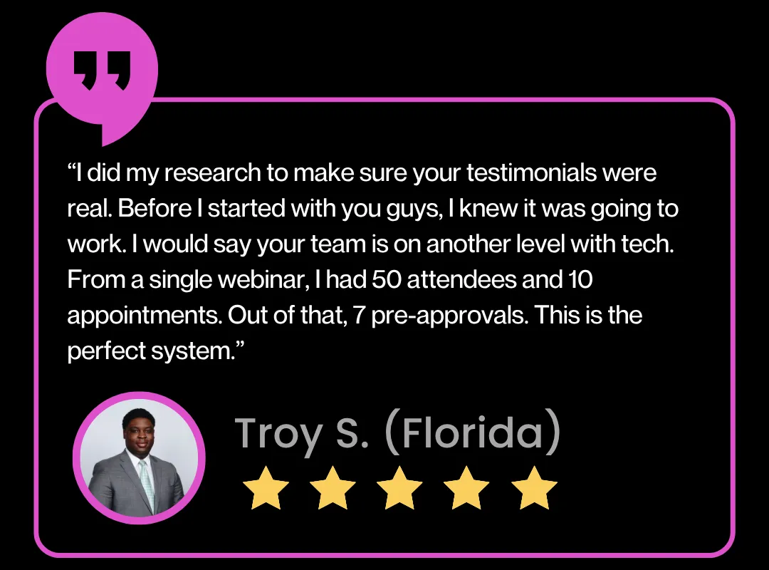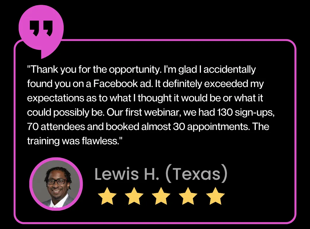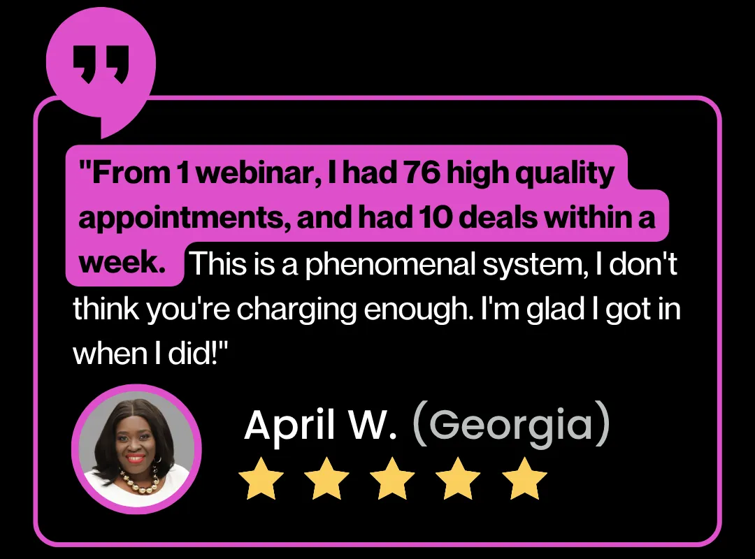 By Day 5, she was hosting webinars like a pro and booked 12 appointments from her very first session.