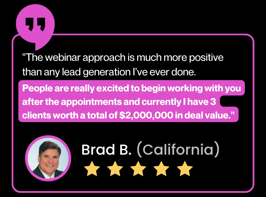 This isn't theory - these are the exact strategies Bradley and over 400 other agents are using right now to generate 5-10 deals per month.